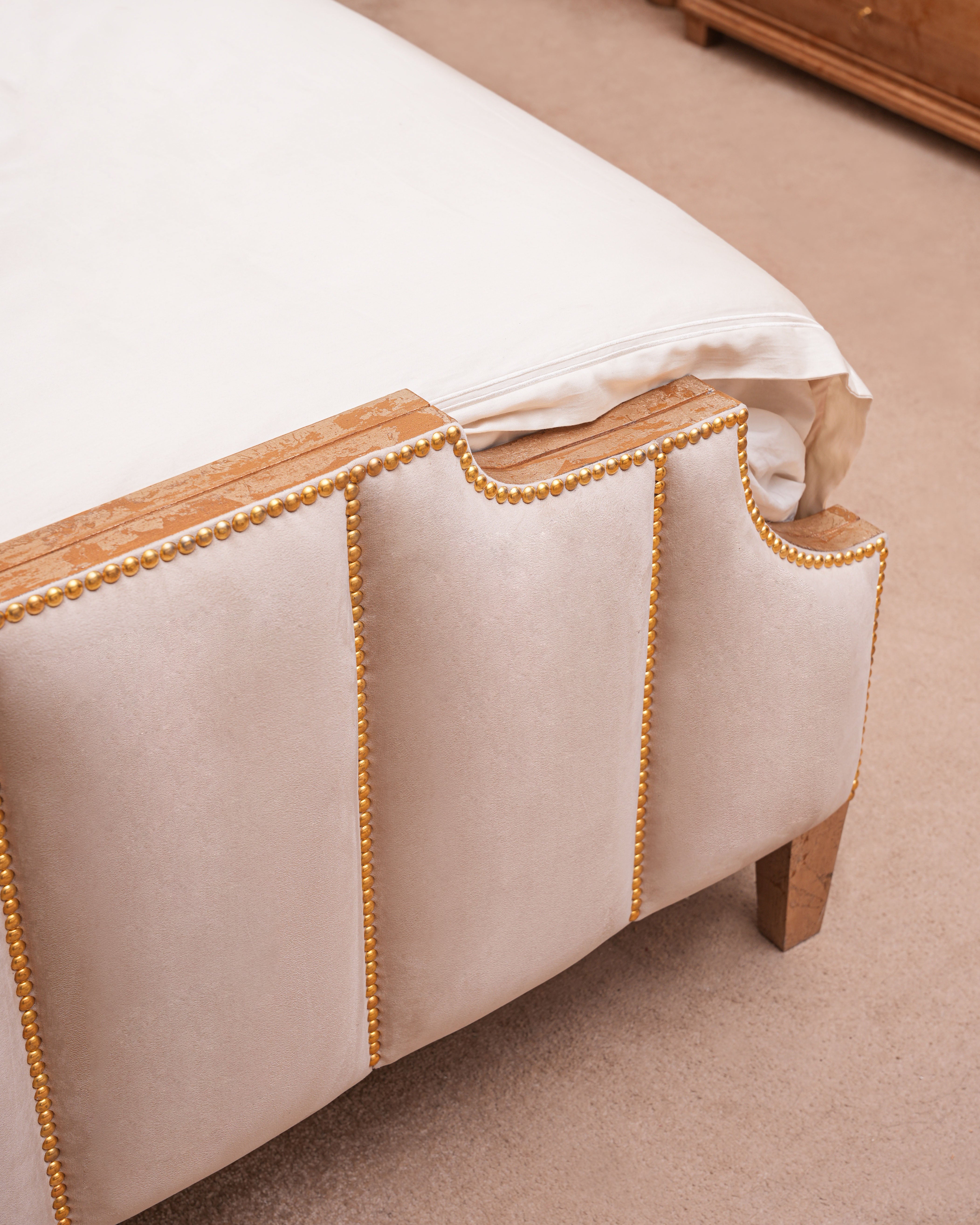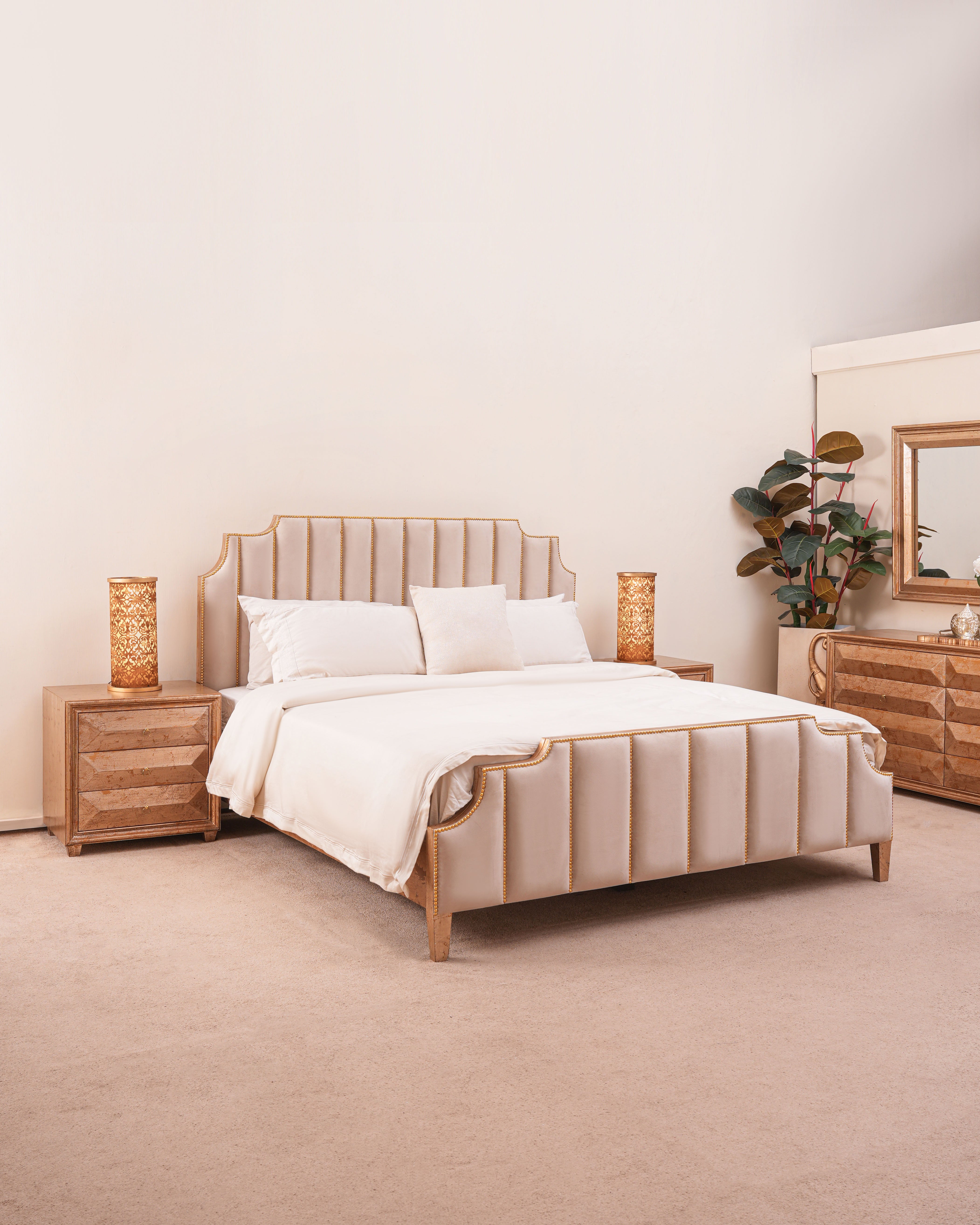 Surround yourself in the warmth and softness of our inviting, well-crafted Silk bed set. Our Bed Set includes Bed King Size 6’ x 6 ½’ two side tables, dresser and a frame [without mattress].Our furniture is made to order, standard delivery time is 3 months.Want this for your space? Chat with Our Interior Consultant.